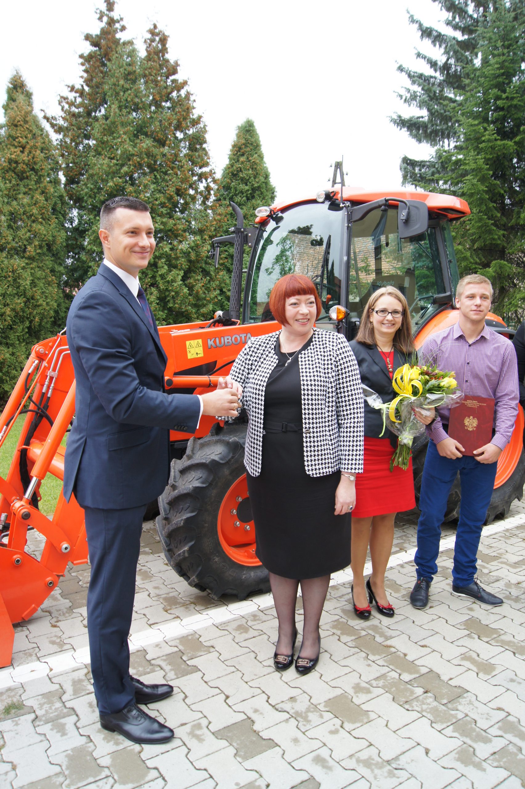 Kluczyki do 72-konnej maszyny, w imieniu firmy Kubota, wręczył przedstawicielom szkoły Michał Poźniak, Szef Działu Sprzedaży. To dla nas zupełnie nowe doświadczenie. Do tej pory nie mieliśmy okazji praktykować tego typu współpracy. Cieszymy się, że udało nam się nawiązać partnerskie relacje właśnie z Zespołem Szkół w Mokrzeszowie, który ma za sobą już ponad pół wieku tradycji w zakresie krzewienia wiedzy rolniczej. Wierzę że przekazany ciągnik Kubota M7040 pozwoli uczniom zapoznać się z najnowszymi technologiami wykorzystywanymi w rolnictwie i będzie dla nich cennym narzędziem szkoleniowym podczas zajęć praktycznych – powiedział po uroczystym przekazaniu ciągnika, Michał Poźniak.