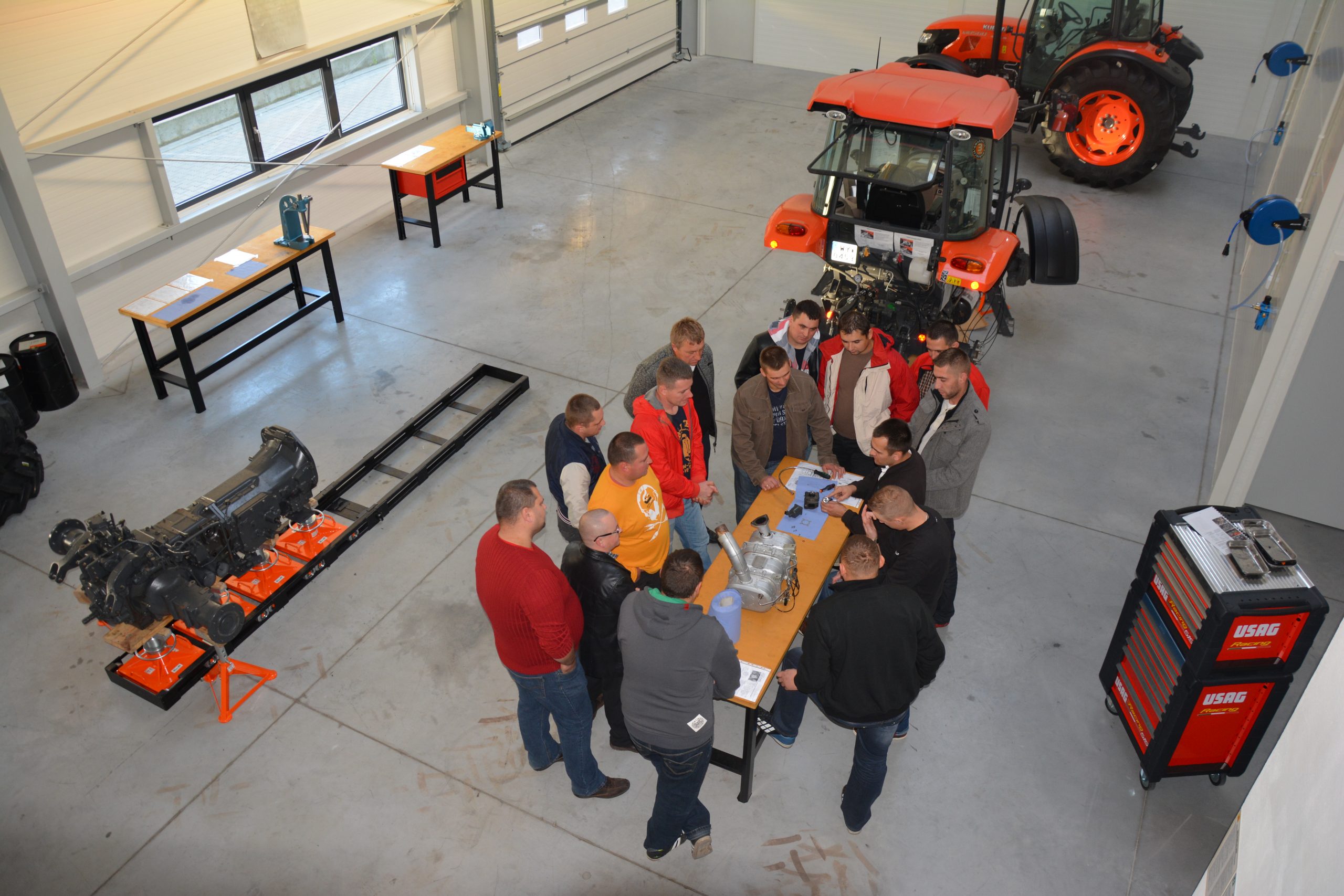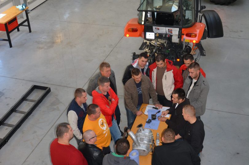 Kluczem do sukcesu jest regularne szkolenie serwisantów i mechaników. W przypadku marki Kubota szkolenia odbywają się cyklicznie kilka razy w ciągu roku i trwają od 2 do 3 dni każde. Podzielone są tematycznie ze względu na poszczególne modele, a swoim zakresem obejmują zagadnienia takie jak: budowa i zasady działania poszczególnych układów ciągnika, obsługa serwisowa, osprzęt i dodatkowe wyposażenie oraz obsługa narzędzi diagnostycznych. Szkolenia składają się zarówno z części teoretycznej jak i praktycznej. Uczestniczą w nich wszyscy odpowiedzialni za serwis pracownicy Dilerów. Ćwiczenia praktyczne odbywają się w nowopowstałej sali szkoleniowej z zachowaniem najwyższych standardów i norm BHP. Sala wyposażona jest we wszystkie niezbędne narzędzia i urządzenia zapewniające komfort i bezpieczeństwo nauki. Po zakończeniu szkolenia każdy uczestnik otrzymuje zestaw materiałów szkoleniowych.
